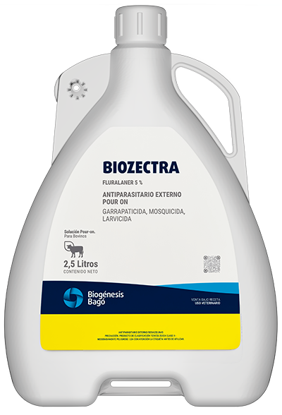 Antiparasitario externo pour on para bovinos compuesto por Fluralaner. Posee un amplio espectro de acción contra los parásitos externos y un elevado poder residual de 42 días frente a la garrapata común del bovino, Rhipicephalus (Boophilus) microplus.
